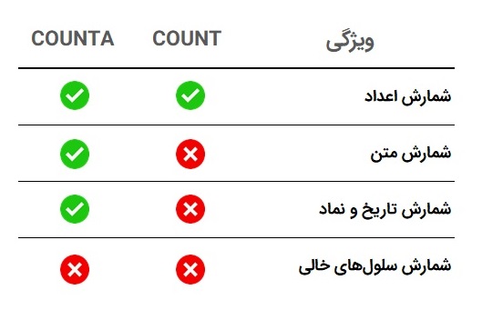 تفاوت بین تابع COUNT و تابع COUNTA در اکسل